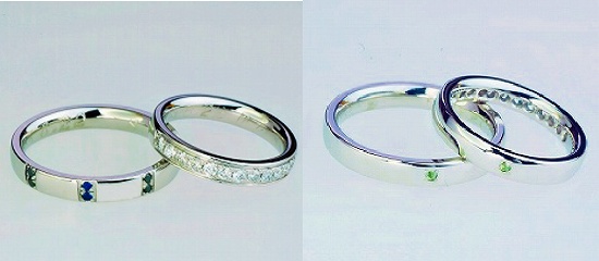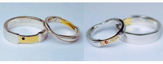 お互いの誕生石を入れ絆を表しました。部分的にK18が魅力的で日常でどんな洋服にも