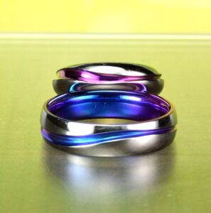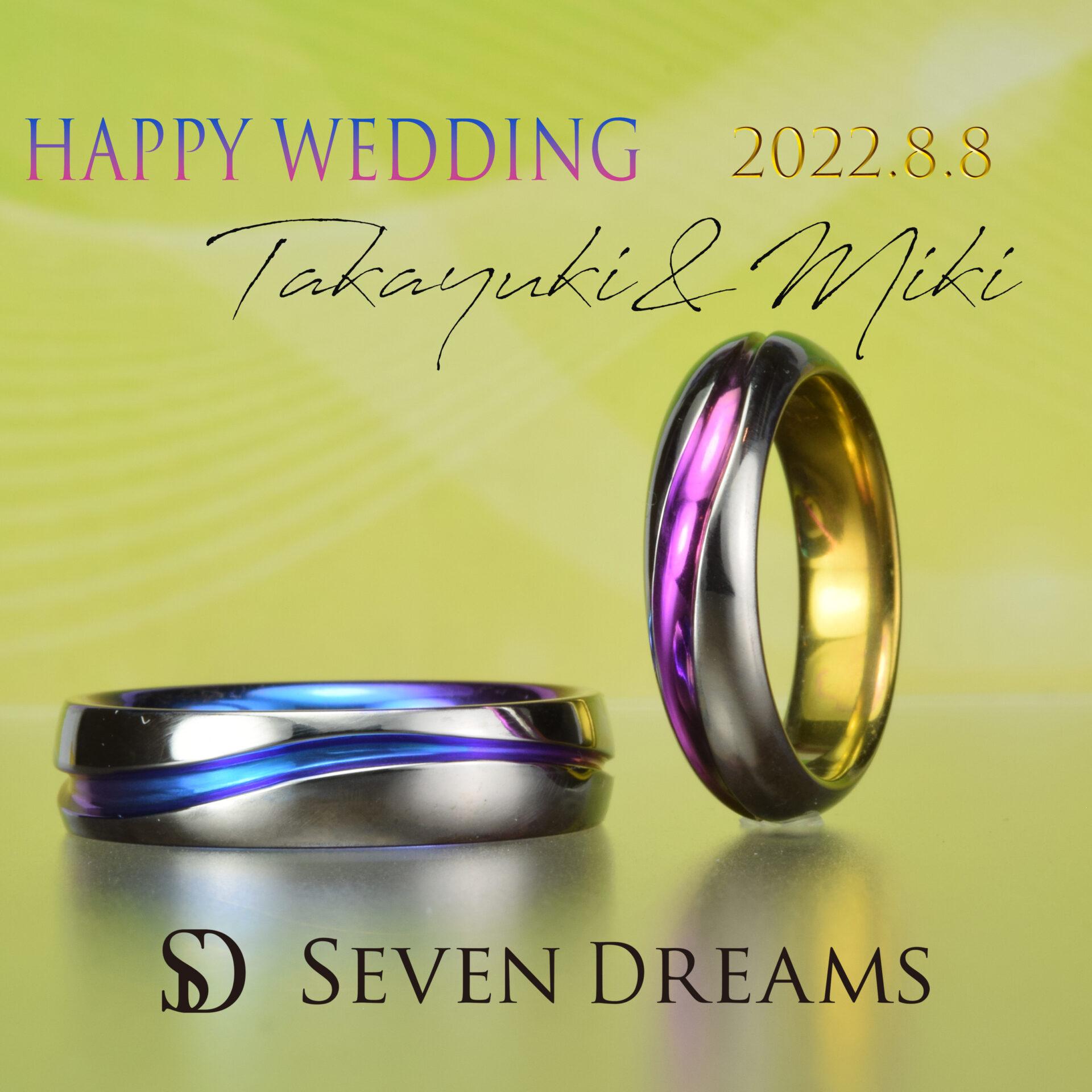 ディープブルーのグラデーション&ピンク~イエローのグラデーションの結婚指輪が完成!喜びの声が届きました。