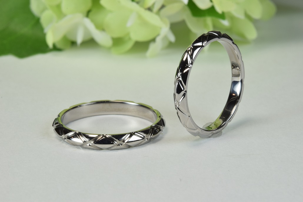ラスター アーガイルスリム【MG-070】人気の<アーガイル柄>をスタンダードモデル<ラスター>にあしらったデザイン。 アーガイル柄の格子と、リングセンターのエッジが織りなすきらめきが手元に華やいだ空気を運んでくれます。