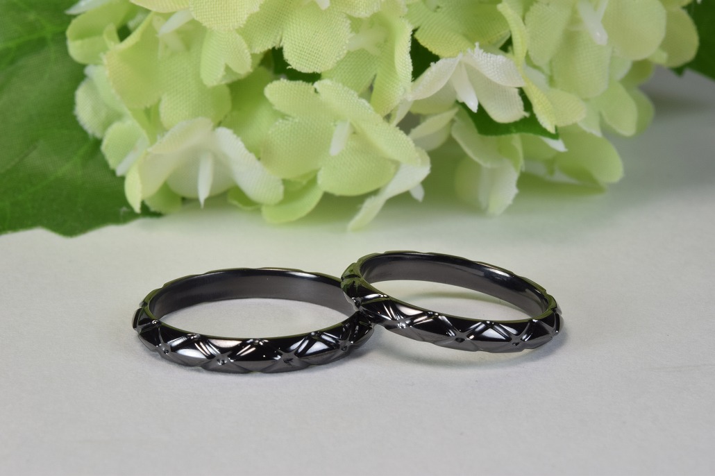 ラスターアーガイルスリム ブラック【MG-071】アレルギーフリーシンプル&スタイリッシュなフォルムで、常時人気上位モデルの<ラスター>の<タンタル>バージョンです。 エッジの利いたシャープなデザインと「地上でもっとも黒い金属」タンタルのマッチングは最高で、磨き抜かれた黒い表面がとても美しく映えるデザインです。