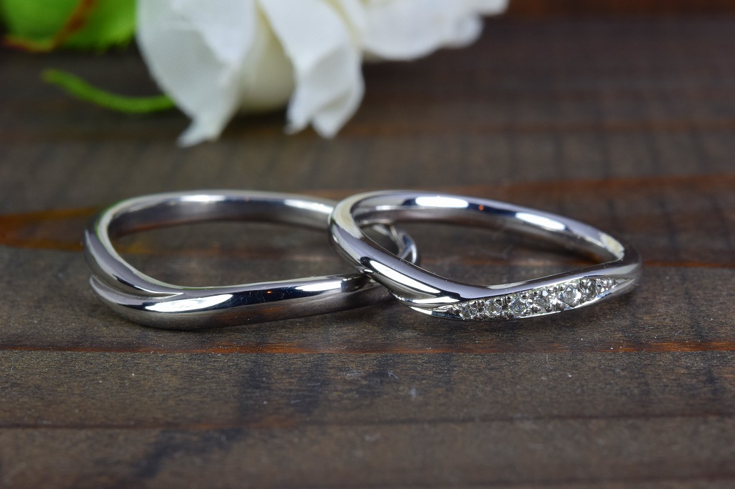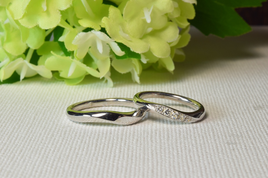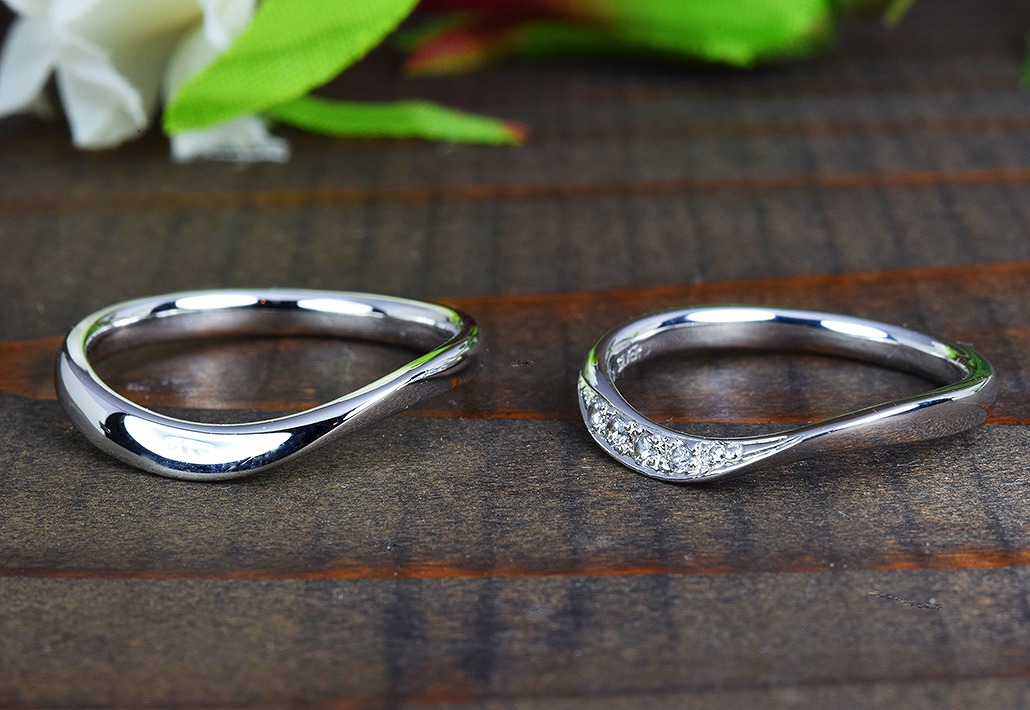 well(ウエル)良い流れに乗って~ 【 MG-039】結婚とは人生の節目であり、人生の転機でもあります。 そのいい流れに乗って人生の波に乗っていく。 ダイヤモンド1個にハートが8個見える上質なダイヤモンドを5個使用し、しかも 1mm~1.3mmのダイヤを流れるように美しくグラデーションに指輪に留めています。 こんなに小さいダイヤモンドを正確に連続して留めれるのはジュエリー職人ならではの技術です。