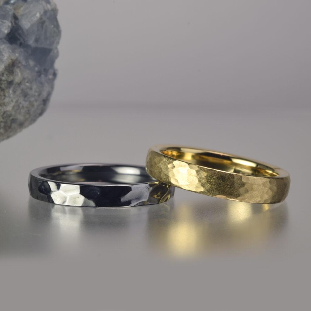【タンタル×K18 槌目仕上げの結婚指輪】