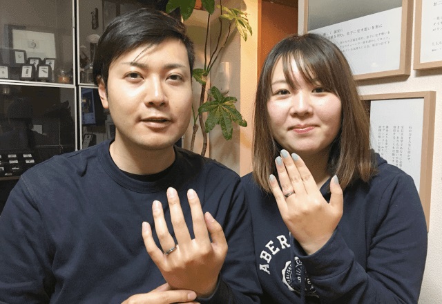 「今回は最初から丁寧に説明して頂いて、とても素敵なご夫婦から最高の指輪を頂きました!ありがとうございます ^^」