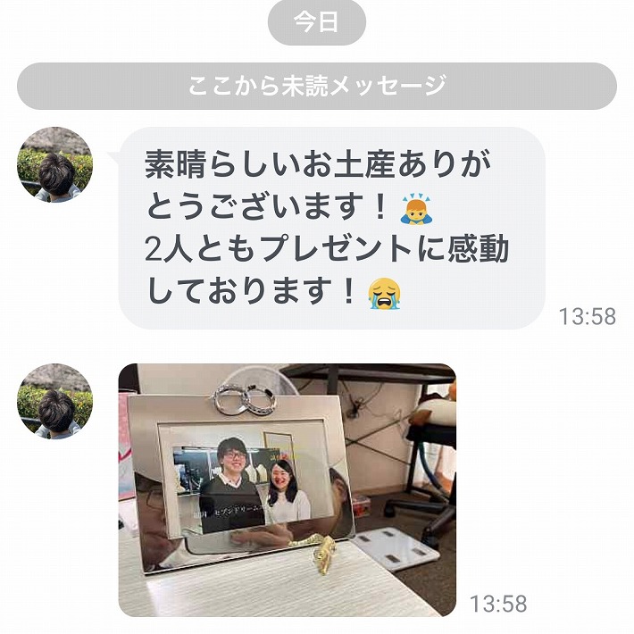 |・素晴らしいお土産ありがとうございました。2人もプレゼントに感動しております。