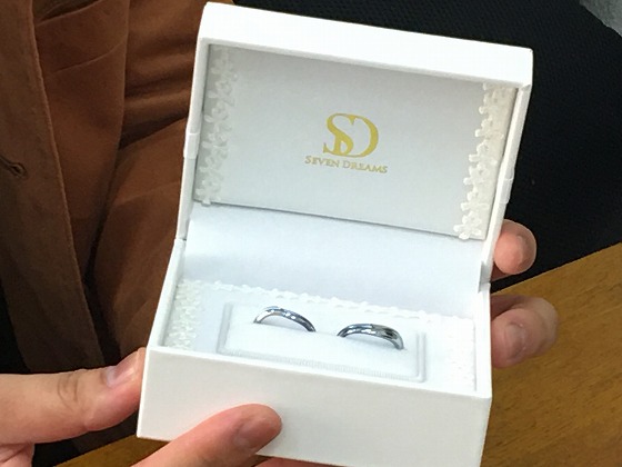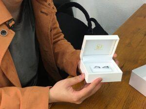 サイトのギャラリーのブルーの発色が鮮やかなリングに目が留まりご来店のお二人。