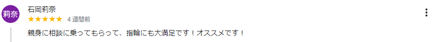 親身に相談に乗ってもらって、指輪にも大満足です!オススメです!