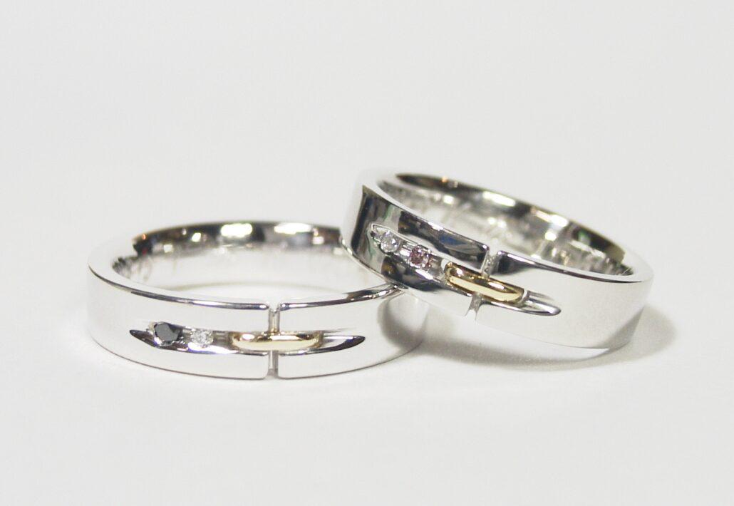 A. もちろんです。当店では「お揃いじゃなくてもいい」をポリシーとしています。それぞれの好みに合わせた素材選びをサポートし、内側の刻印やさりげないモチーフで二人の繋がりを表現することもできます。
