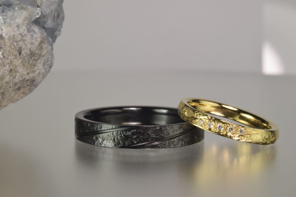カラーリングの技術と素材が絶妙に融合し、通常の金属では表現できない深みと輝きを実現。「他の人とはちょっと違う結婚指輪」を探しておられるカップルに、まさに理想的な選択肢です。