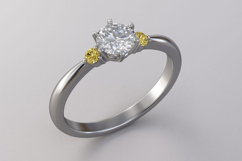 黄色は「太陽」や「光」を連想させる色。心理学的には、幸福感・創造性・ポジティブなエネルギーを引き出すとされており、新たな門出を祝う婚約指輪にぴったりのカラーです。